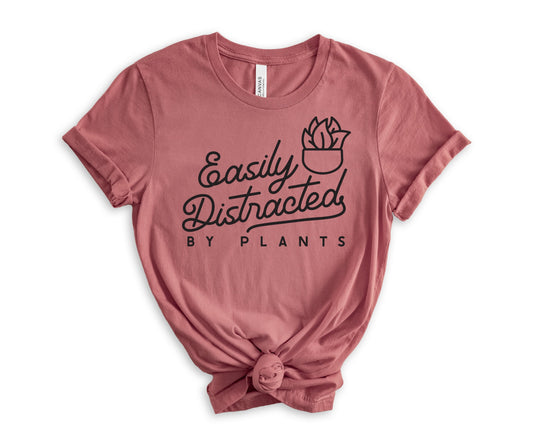 easily distracted by plants shirt women, galentines day gift for best friend, succulent shirt for women, plant gifts for her, plant shirts