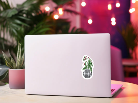 begonia sticker, gift for plant lover, plant sticker for water bottle, disco ball planter, plant store, plant gifts, sparkly plant sticker