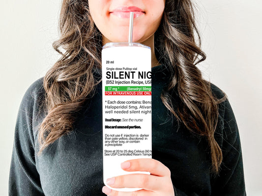 silent night medication skinny tumbler, RN tumbler, RN gift, nurse tumbler, pharmacist, medication tumbler, pharmacist gifts, funny medical