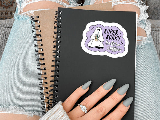 super scary before coffee sticker, coffee sticker, coffee lover, barista stickers, coffee cup, iced coffee sticker, coffee love sticker