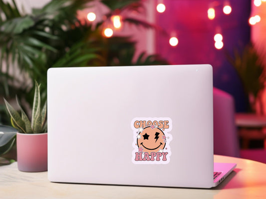 choose happy sticker, sticker for laptop, water bottle sticker, smiley face stickers, gifts for daughters, happiness stickers, positivity