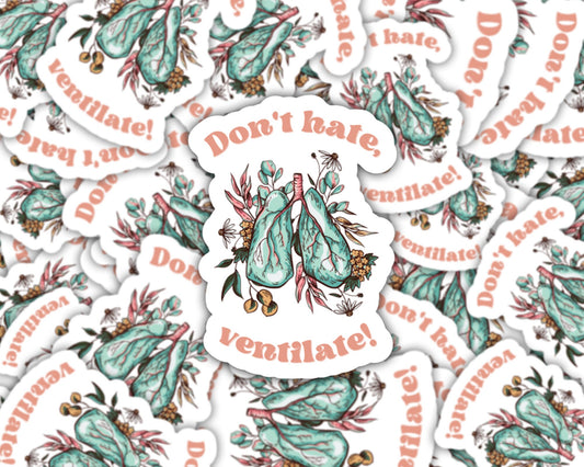 don't hate ventilate, respiratory therapy sticker, nurse sticker, pulmonary sticker, funny healthcare sticker, ventilator sticker, lungs