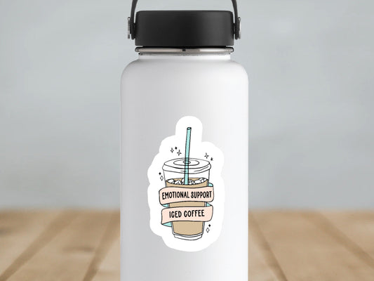 emotional support iced coffee sticker, coffee sticker, coffee lover, for laptop, for water bottle, coffee cup, barista stickers, coffee shop