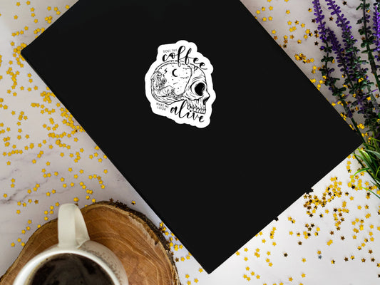 does this coffee make me look alive sticker, coffee sticker, coffee lover gift, gifts for coffee addict, coffee skeleton stickers, cafe gift