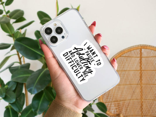 I want to pause adulting and lower the difficulty sticker, sticker for laptop, water bottle sticker, sarcastic gifts, adulting sticker