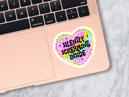 silenty screaming inside sticker, funny stickers for friends, rainbow stickers, retro stickers, cassette tape sticker, mental health sticker