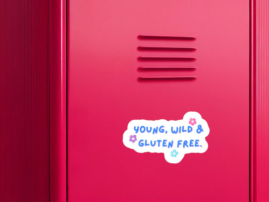 gluten free sticker, gf gift, young wild and gluten free, gluten free bakery, gf sticker, dietician sticker