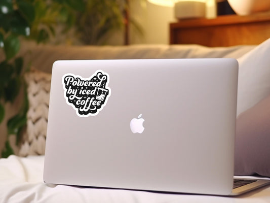 powered by iced coffee sticker, gifts for coffee lovers, coffee gifts, iced coffee sticker, coffee lover sticker, coffee addict, cafe latte